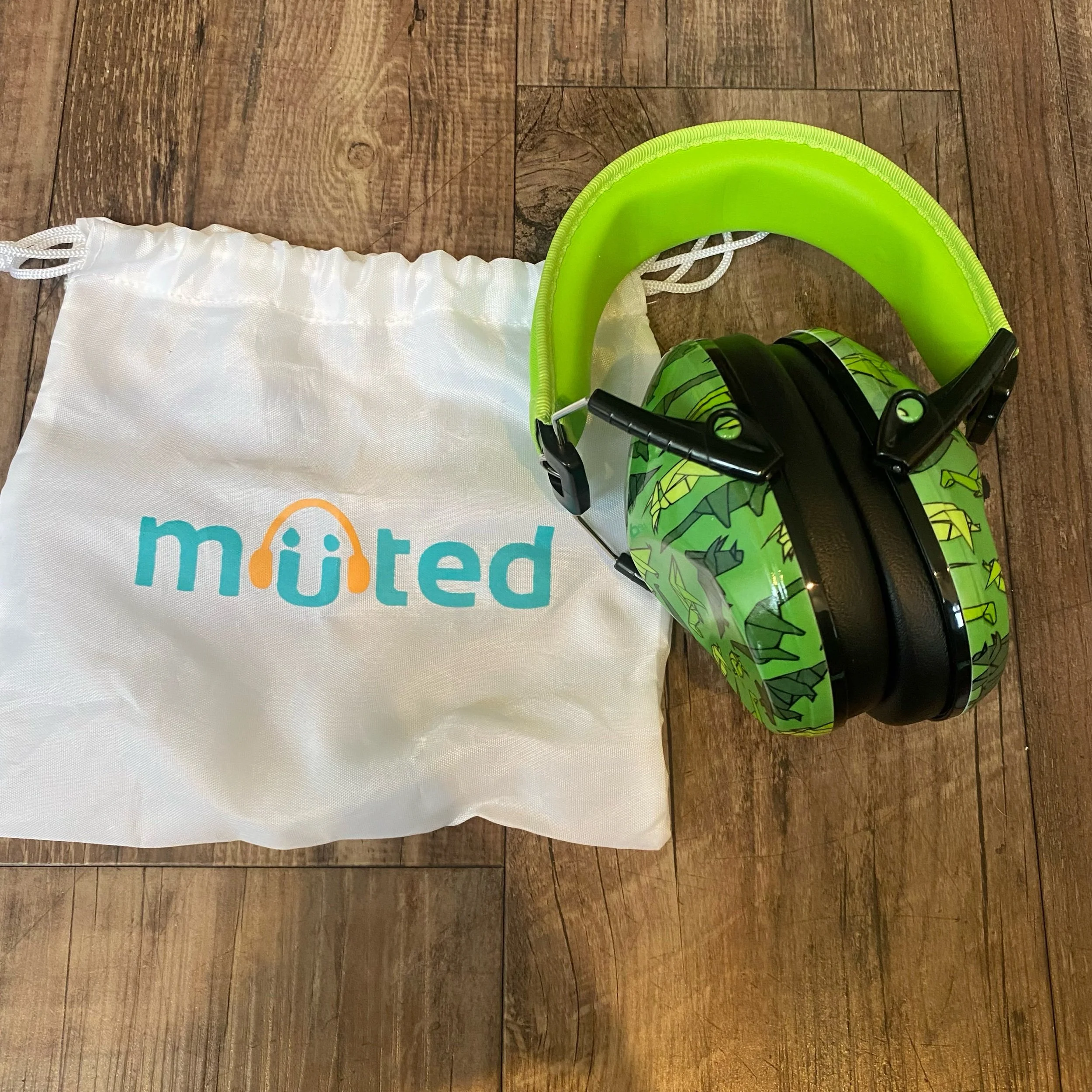 Like new ear muffs for ear/noise protection for kids by Muted. Cool green origami dino print. Adjustable for toddlers to teens! Retails $30