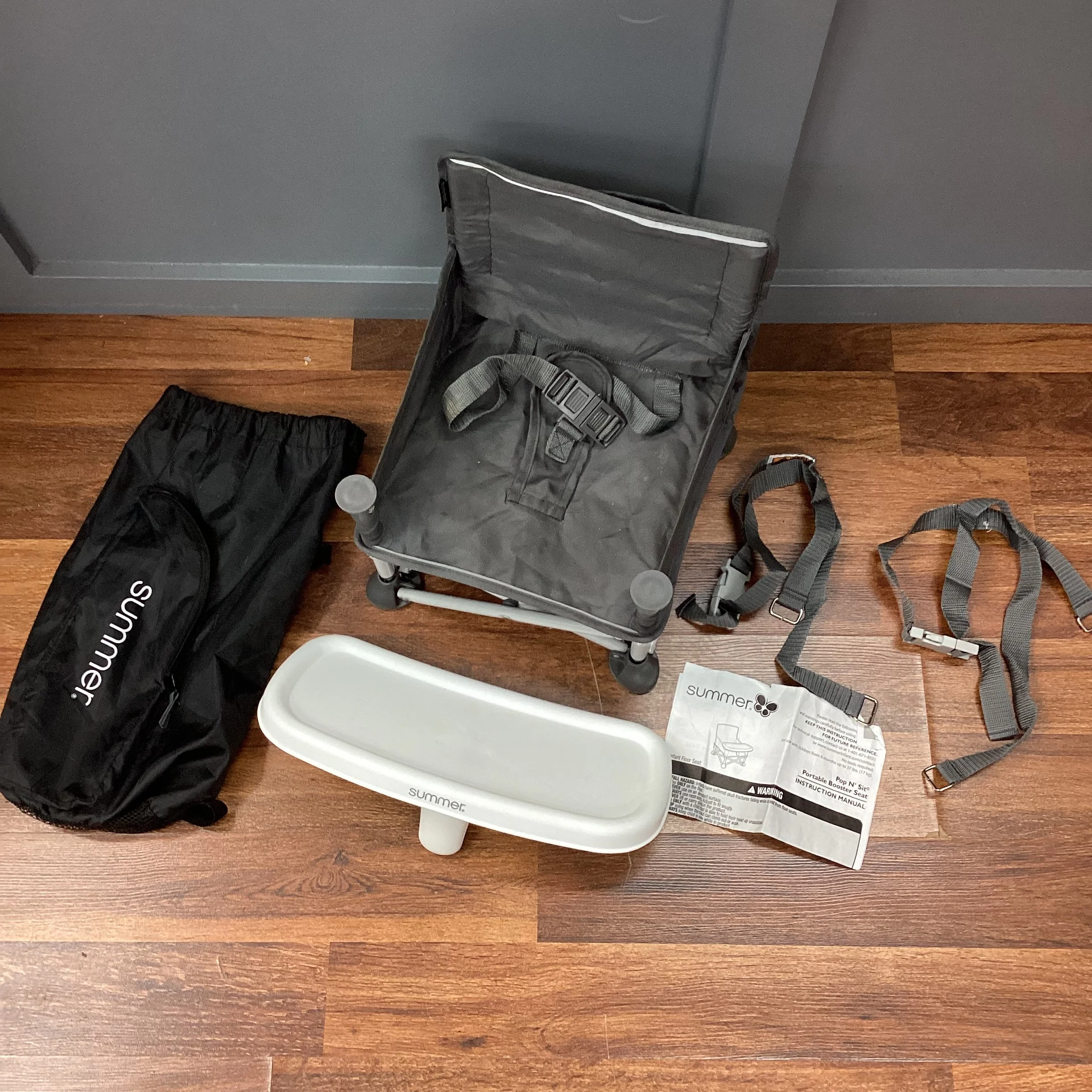 Super convenient and portable Pop N Sit booster seat by Summer Infant! Comes with removable tray, anchor straps, and carrying bag. Recommended for 6 months-3 years.