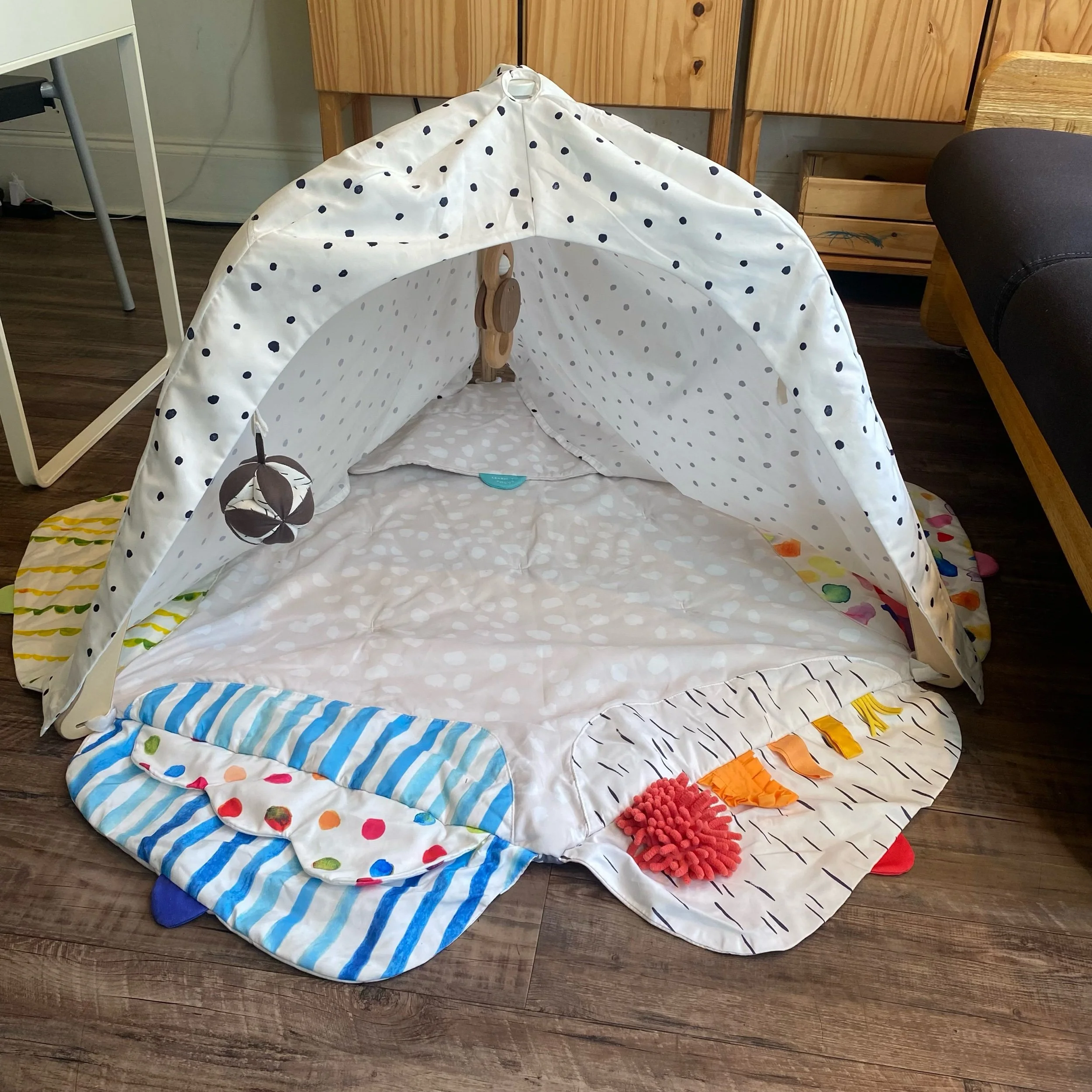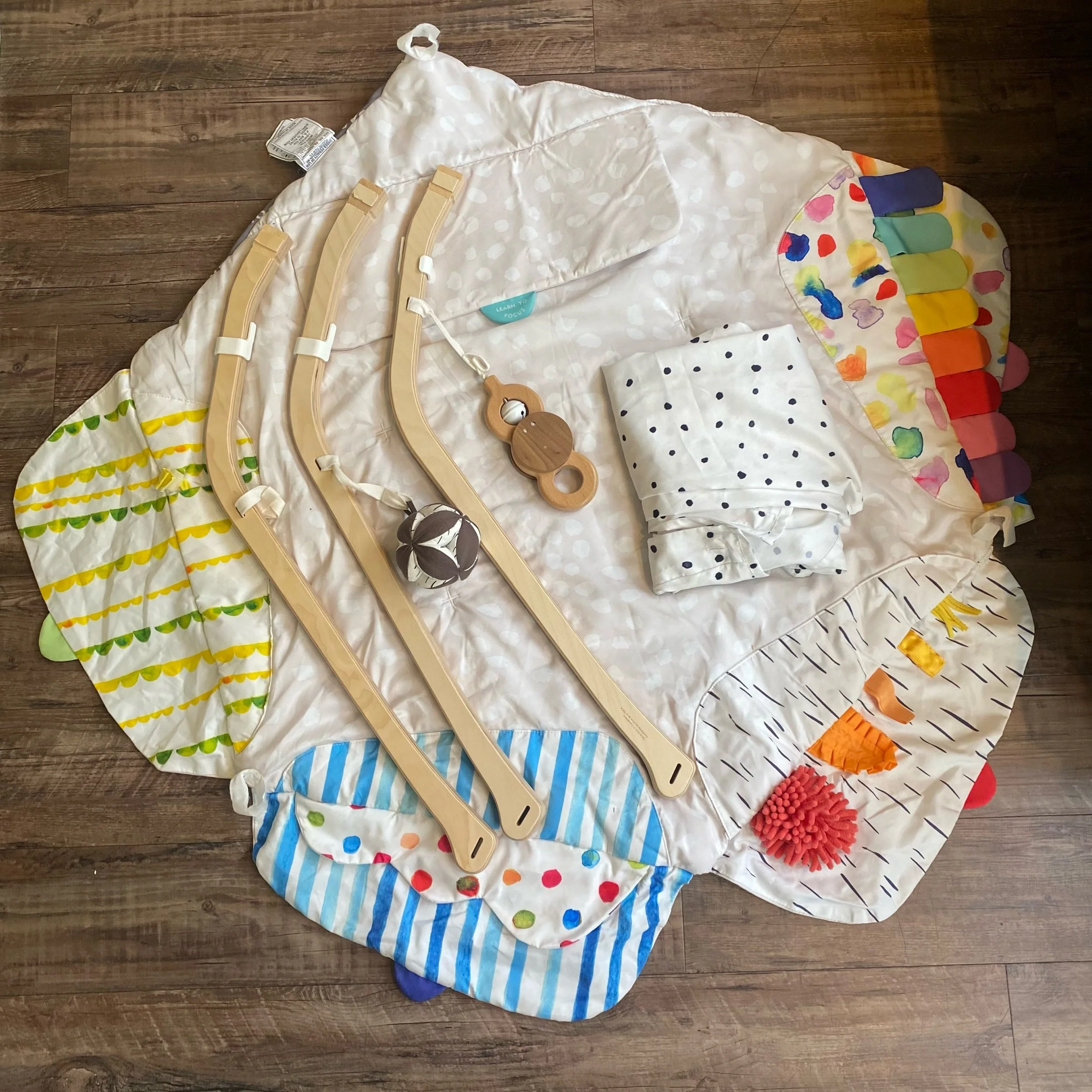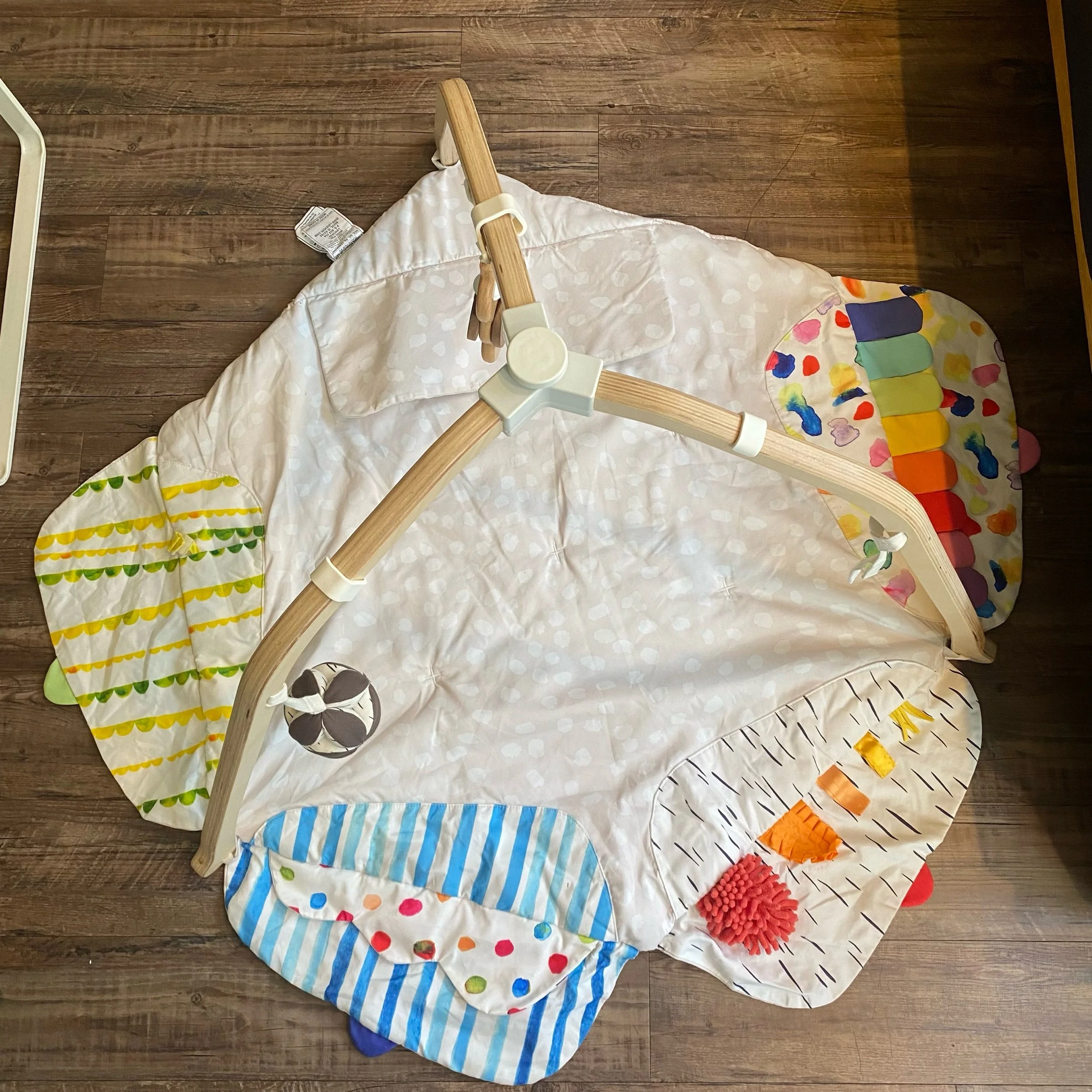 Amazing Lovevery Play Gym! Great for babies and grows along with them into toddler years with the tent cover! Comes with 2 toys as shown.