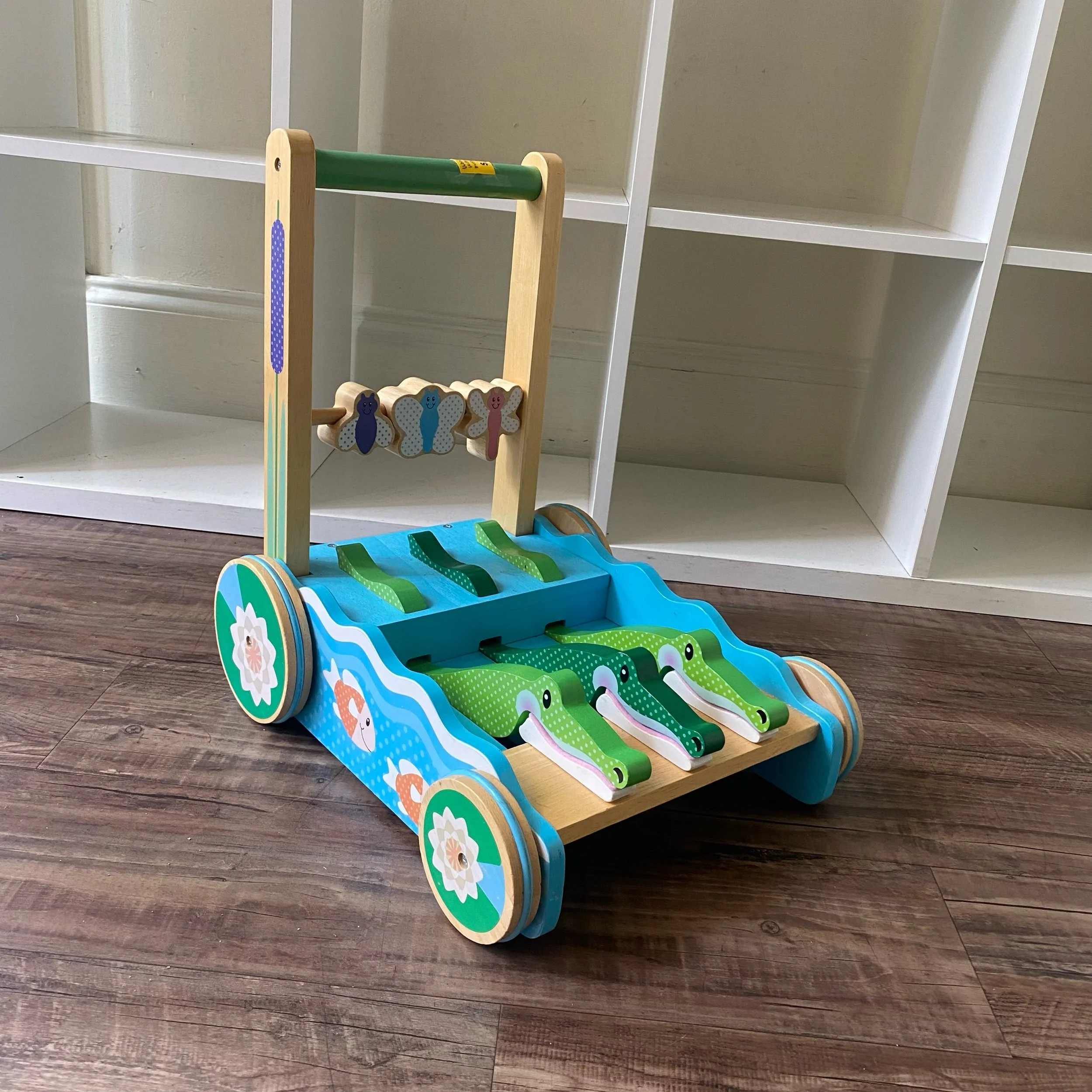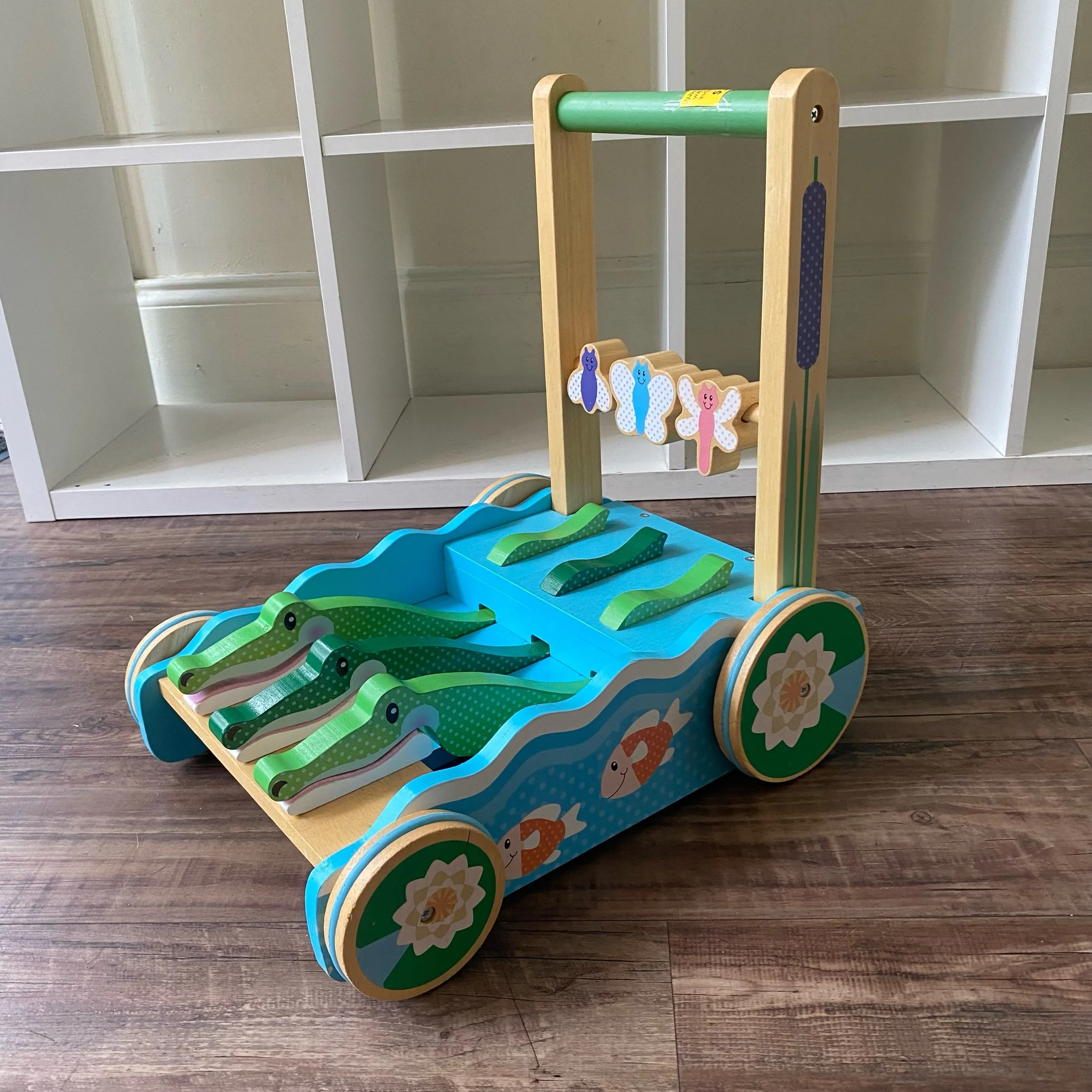 Awesome wooden walker by Melissa and Doug! The alligators chomp as your little one pushes it along! Sturdy and fun.