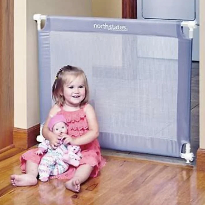Cool portable travel tension gate by North States. Fits doorways 25.2”-42.6” wide. Easy to adjust.