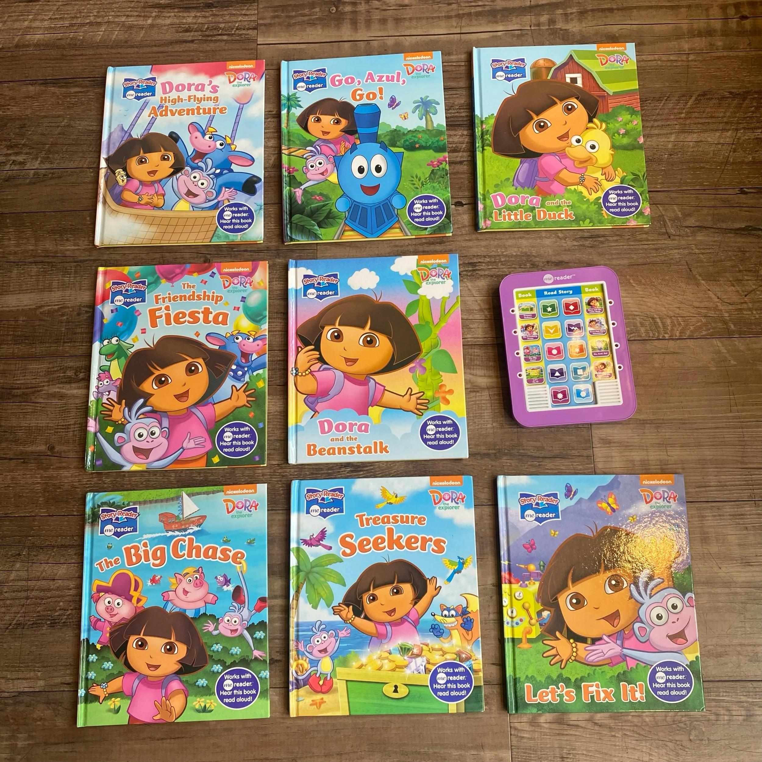 Set of 8 books and MeReader device featuring Dora the Explorer and her adventures! For ages 3+